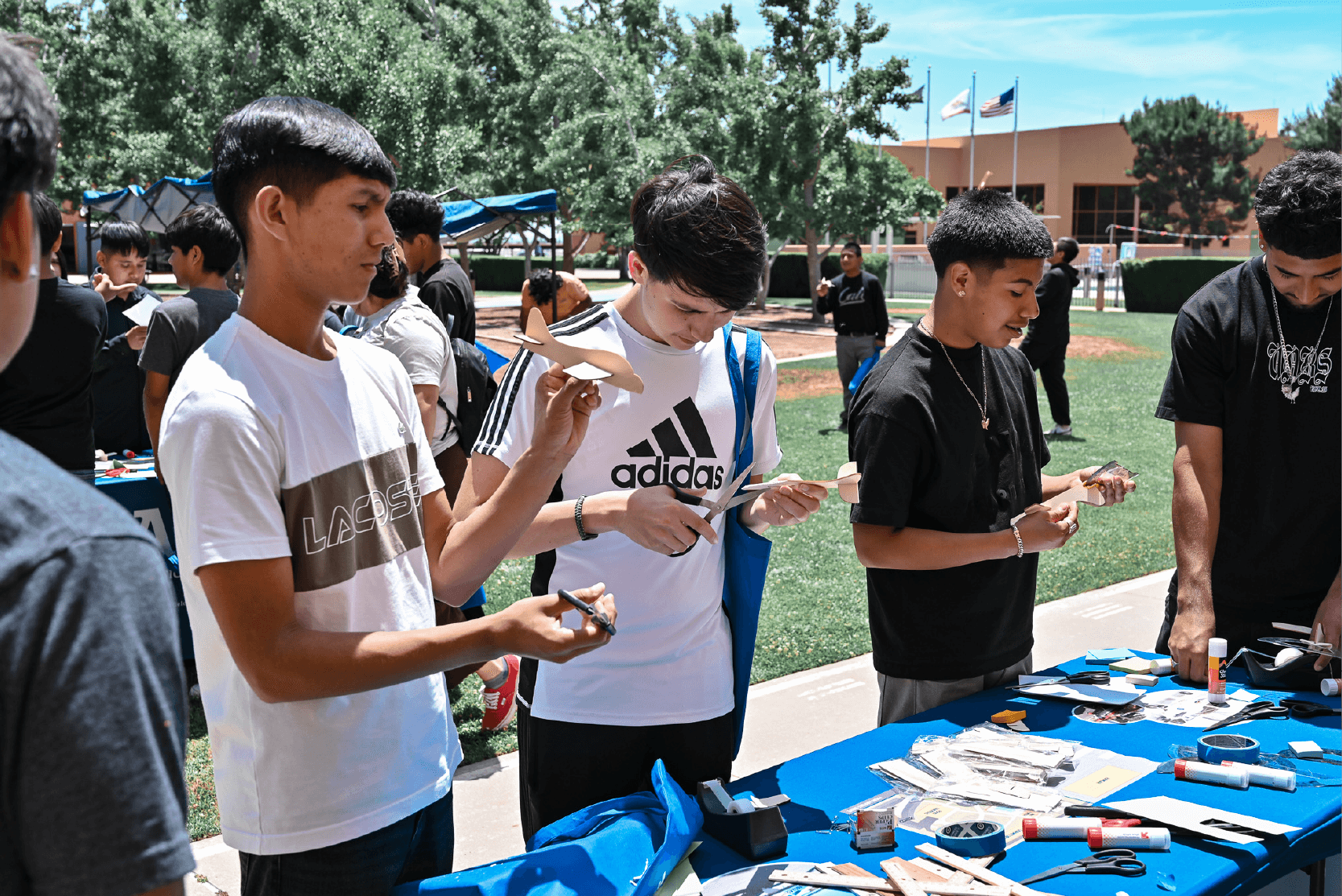 Students participate in an interactive STEM-focused activity to engage their creativity and problem-solving skills while learning aviation concepts. Example activities might include building a balsa wood glider and competing with other students in a glider flying competition.