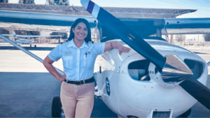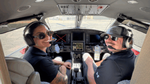 Like many pilots, her proudest moment came early — her first solo flight. “My proudest achievements are twofold: having my family present for my first-ever solo flight and flying my mom in a private jet as a captain,” she reflects. “Sharing my passion for flying with my loved ones made those achievements even more special.”